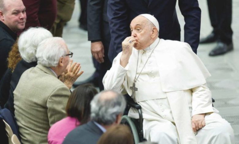 Hablando brevemente en voz muy baja al final de la audiencia, pidió oraciones por los pueblos de Ucrania, Israel y los territorios palestinos ocupados que sufren los efectos de la guerra.