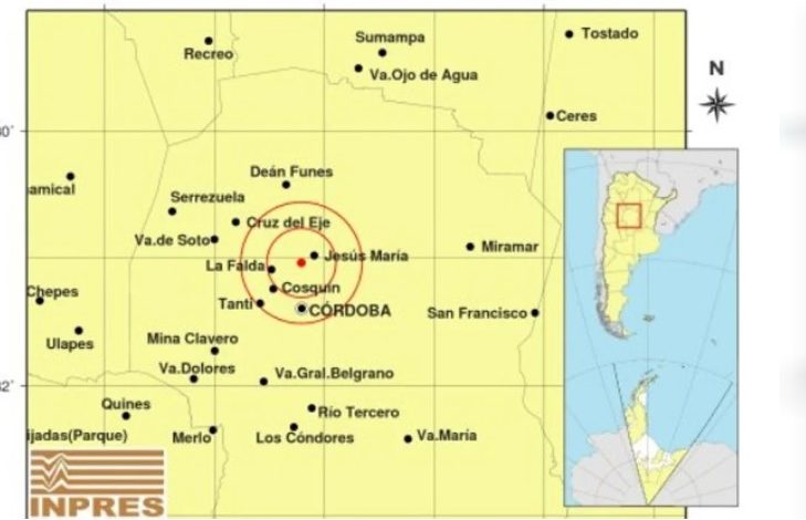 Según el Inpres, el epicentro fue en el noroeste de Córdoba, a 13 kilómetros al suroeste de Jesús María.